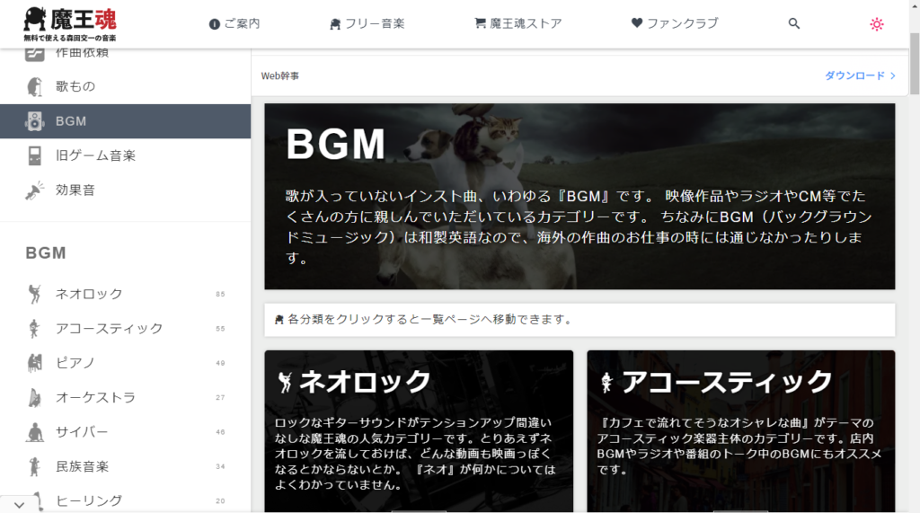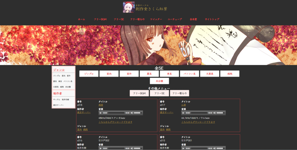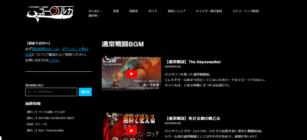 BGM・効果音のフリー素材がある定番サイトです。