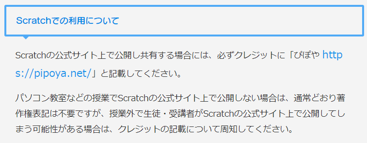 ※本来再配布は禁止されていますが、Scratchは、学習環境という特性上特別に使用を許可してくれています。