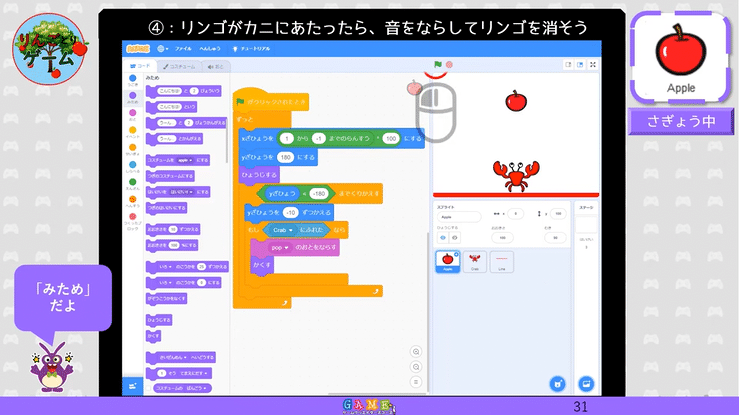 ゲーム教材の紹介:リンゴ取りゲームを作ろう!byTios