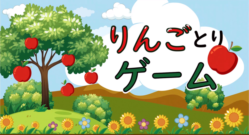 リンゴとりゲームは、上から落ちてくるリンゴをキャラクターが集めるゲームです。