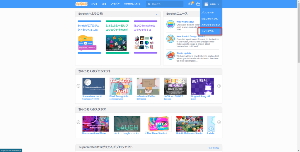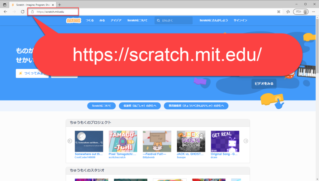 ①スクラッチのサイトへ行く