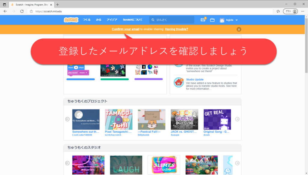 早速、スクラッチからのメールを確認してみましょう。
