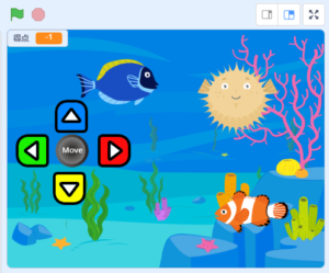 私:「じゃあ、まずプレーする前に青い魚がハリセンボンに攻撃してきてライフを減らすのはどう?そうすれば敵ってわかるよね」