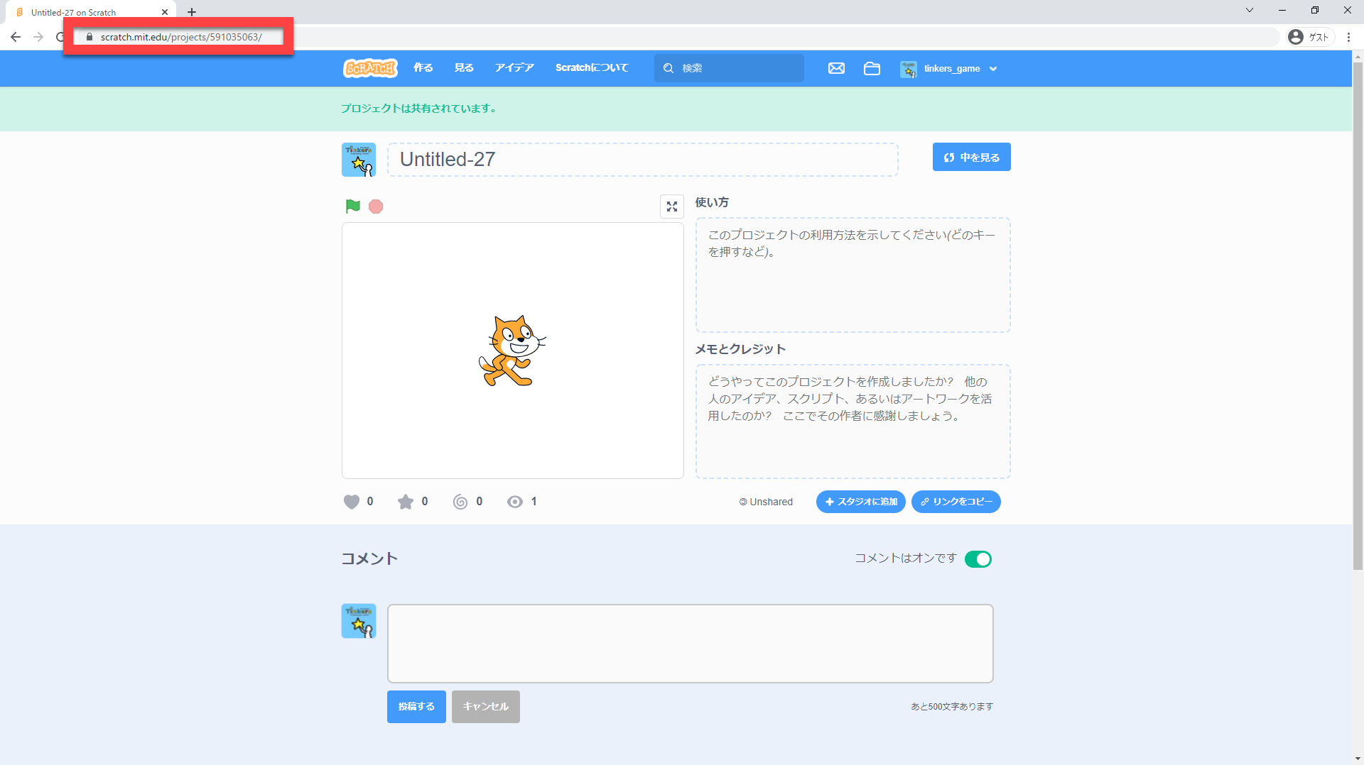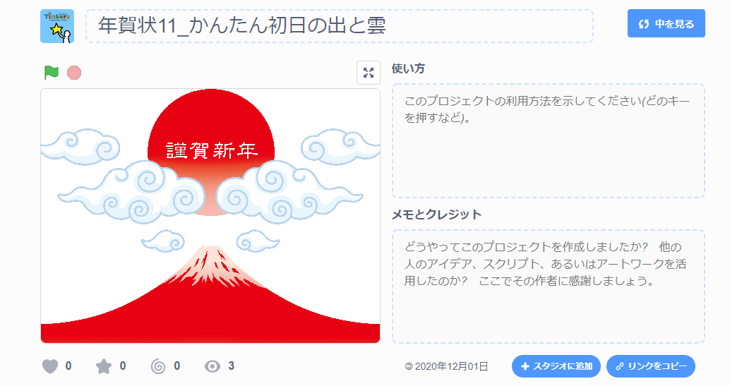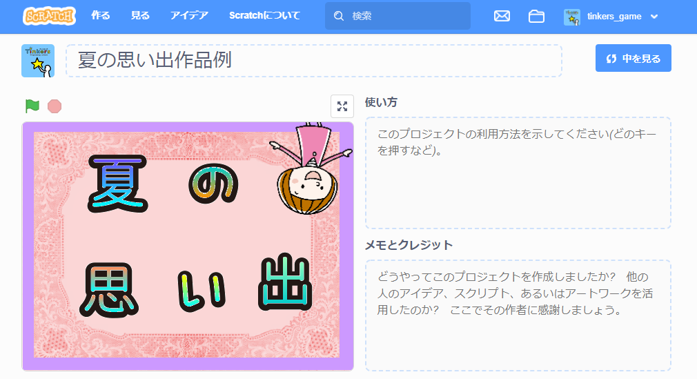 ※スクラッチのほかの作品から素材を借りる場合は、必ずリミックスか、メモとクレジット欄に