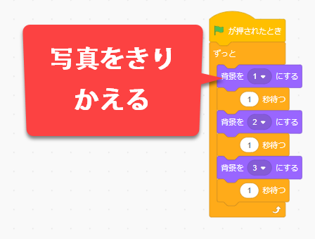 音楽やセリフに合わせて写真を切り替えていくことでスライドショーを
