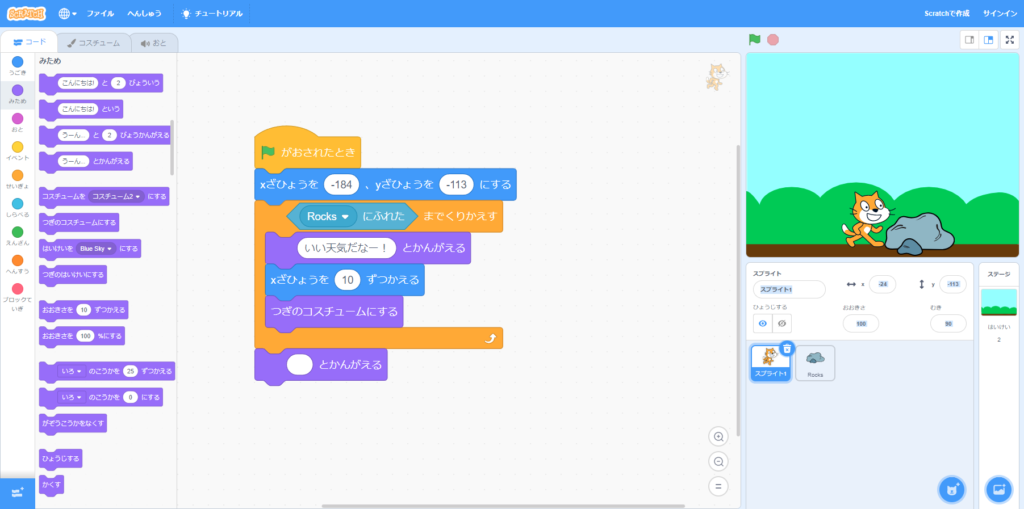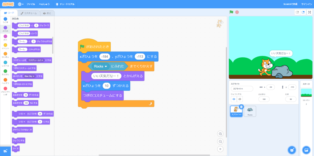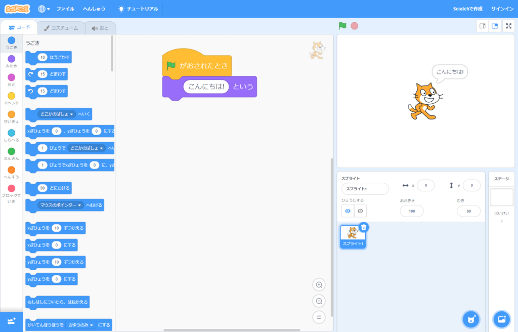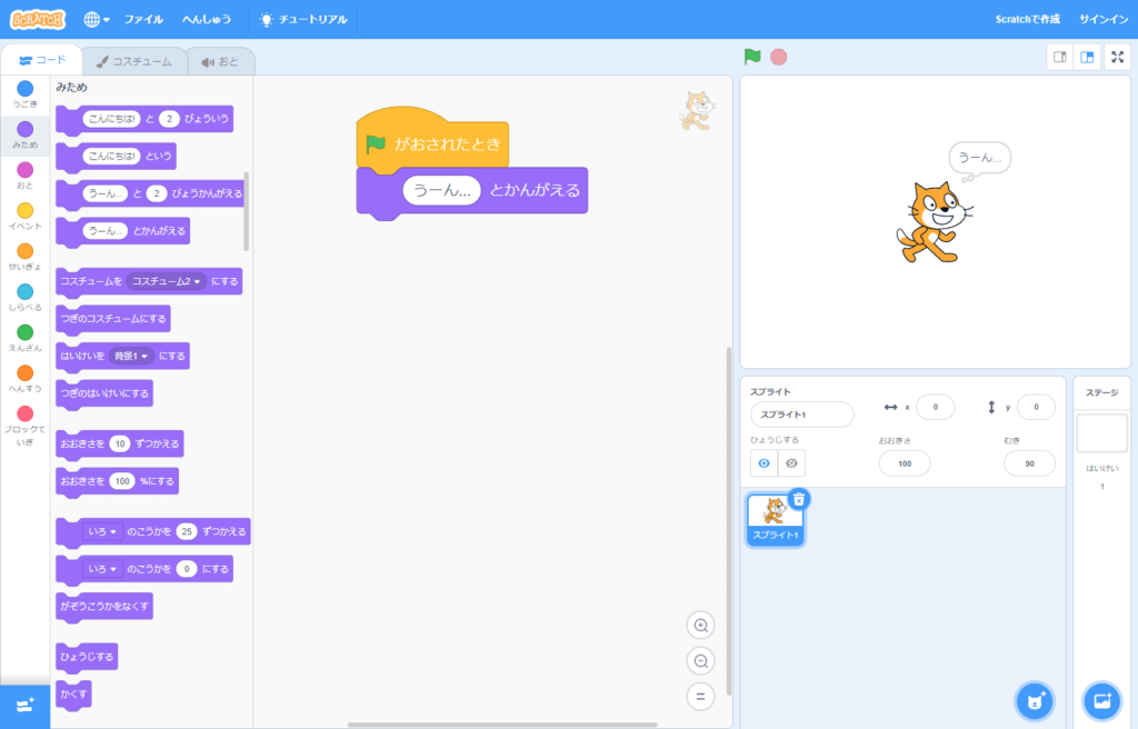 スクラッチ(Scratch)でセリフを表示するブロックは大きく2つあります。