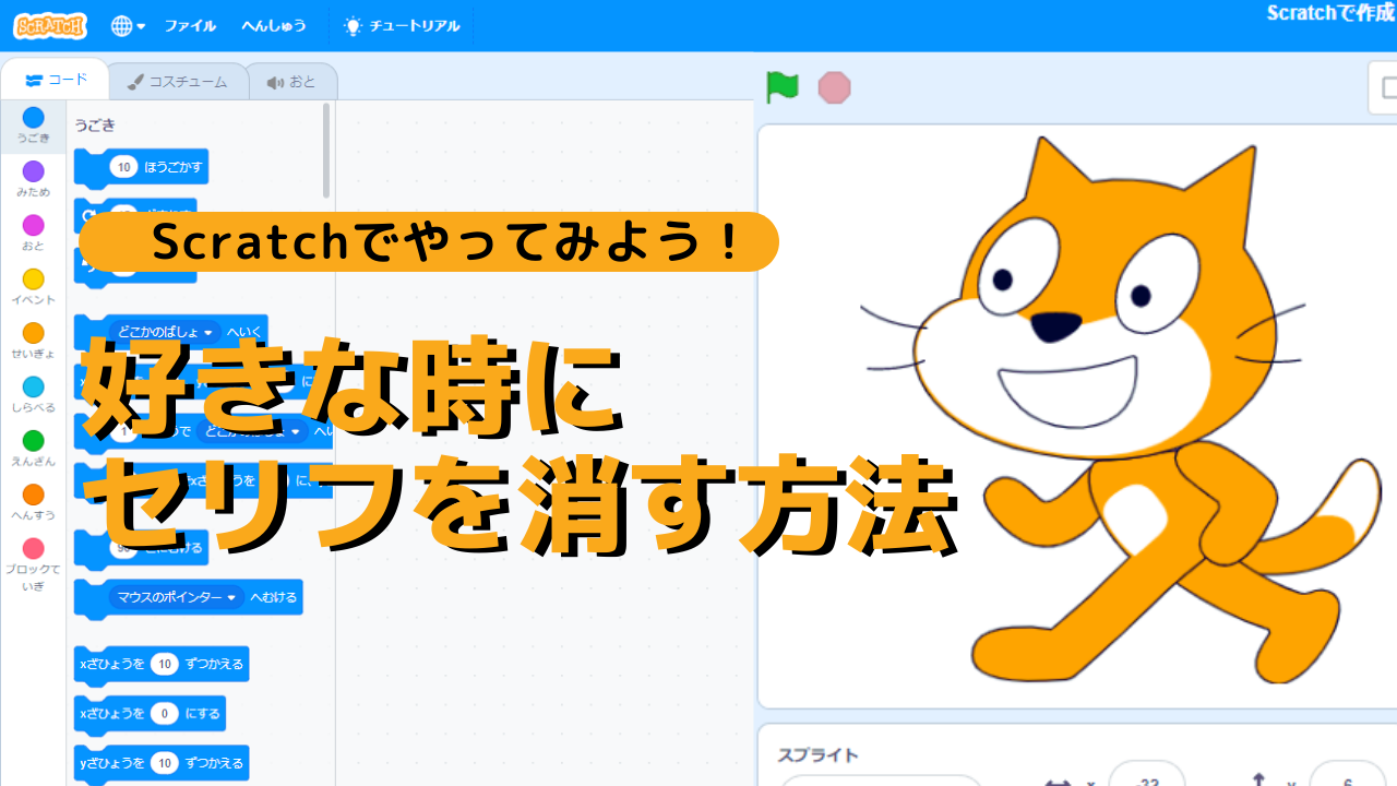 【Scratch】いうブロックで「好きな時にセリフ」を消す方法