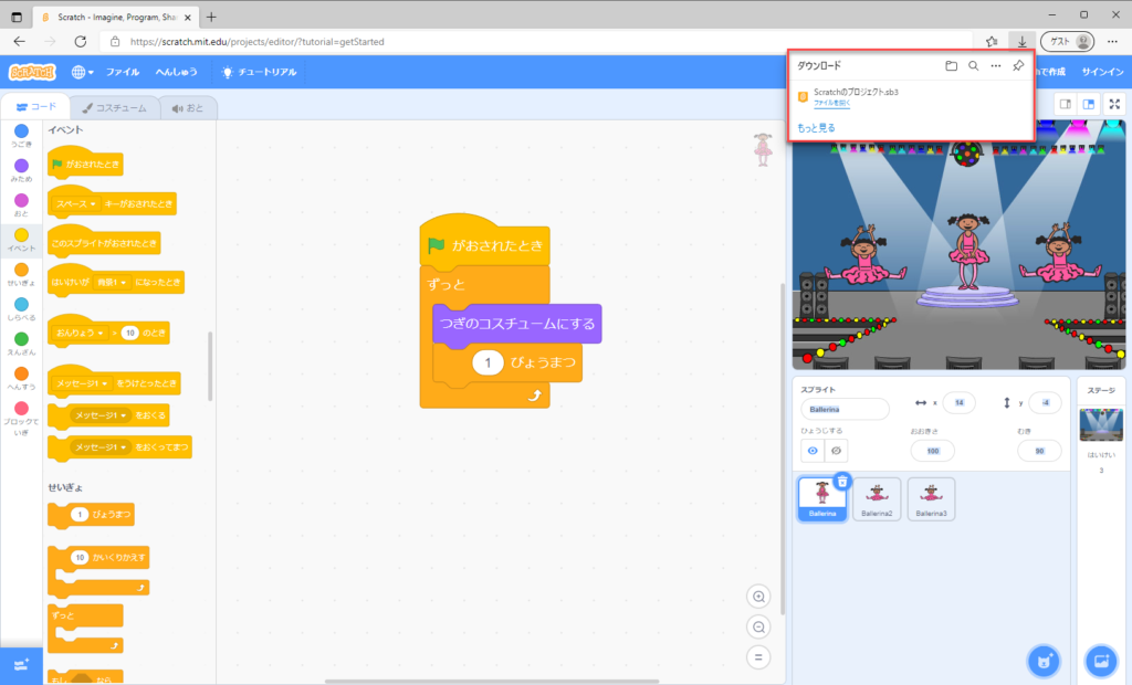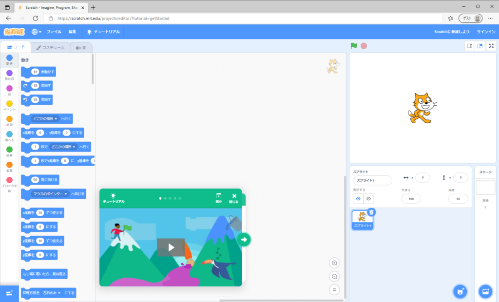 スクラッチは、アカウント登録(無料)をしなくてもプログラミングすることができます。