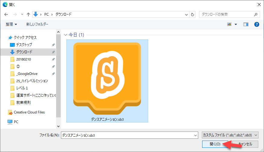 選択し、「開く」をクリックします。