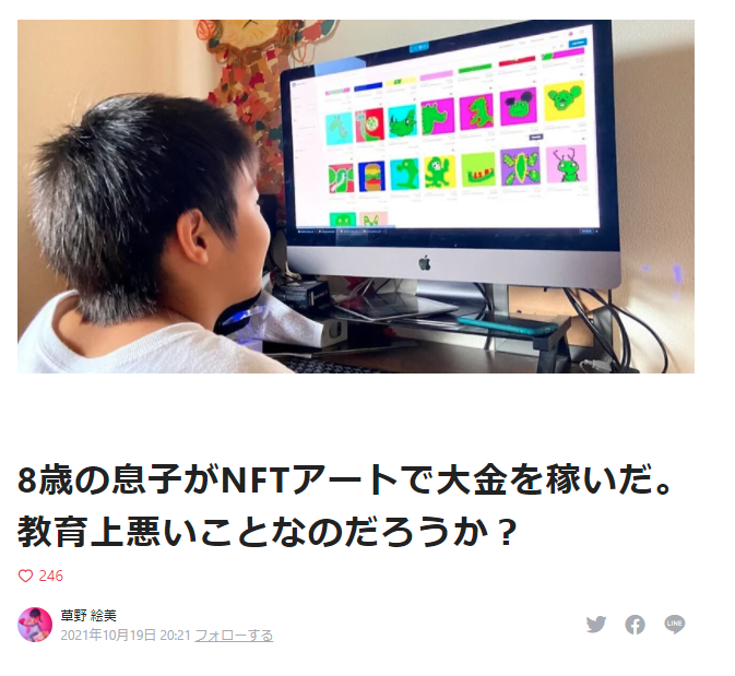 8歳の息子がNFTアートで大金を稼いだ。教育上悪いことなのだろうか?